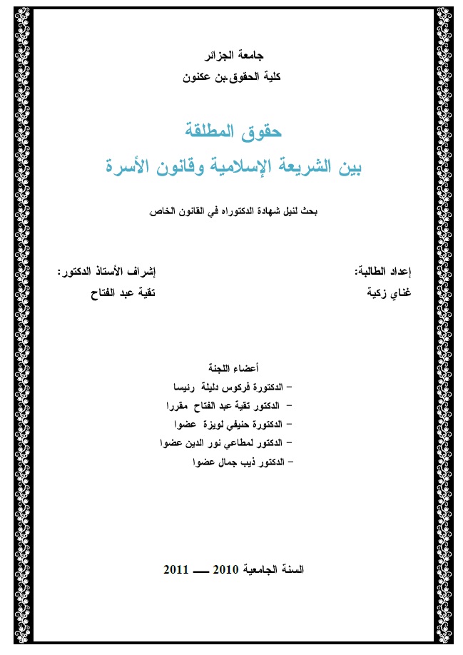 حقوق المطلقة بين الشريعة الإسلامية وقانون الأسرة