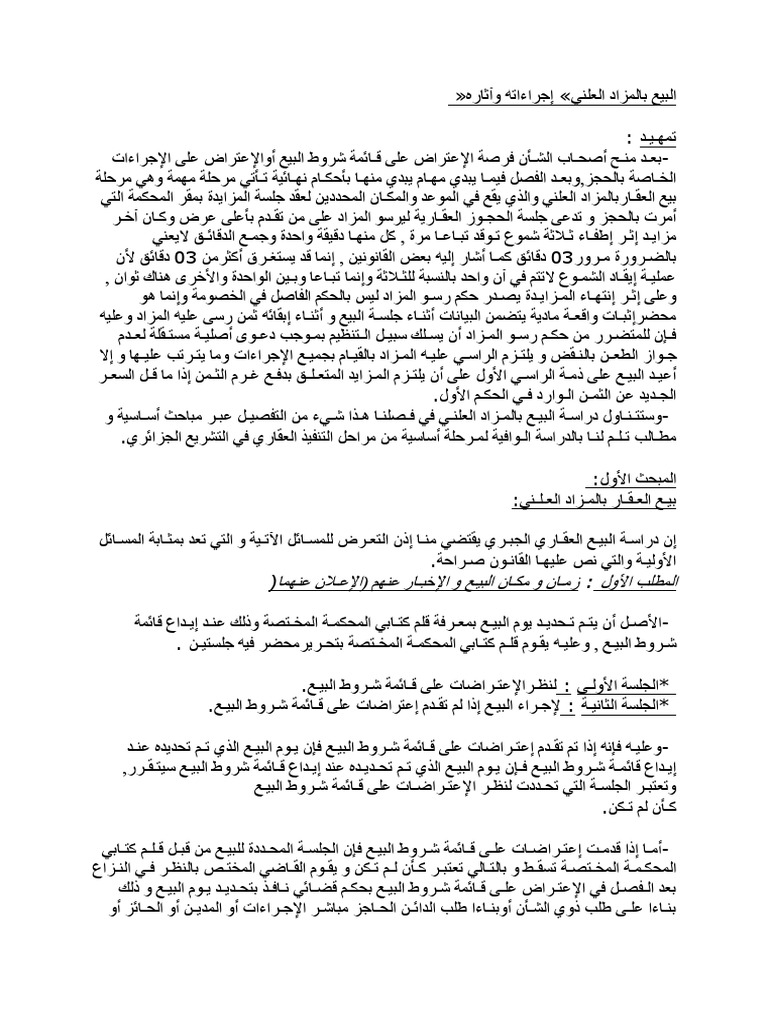 بيع العقار بالمزاد العلني إزالة للشيوع نادي المحامي السوري