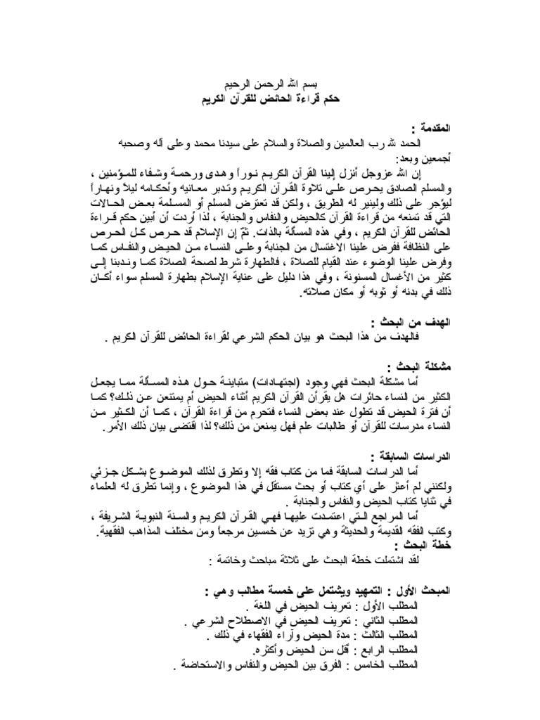 قراءة الحائض والنفساء للقرآن موقع البطاقة الدعوي