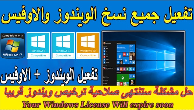 تفعيل جميع اصدارات الويندوز والاوفيس وحل مشكلة انتهاء الترخيص للويندوز بأداة صغيره جدا