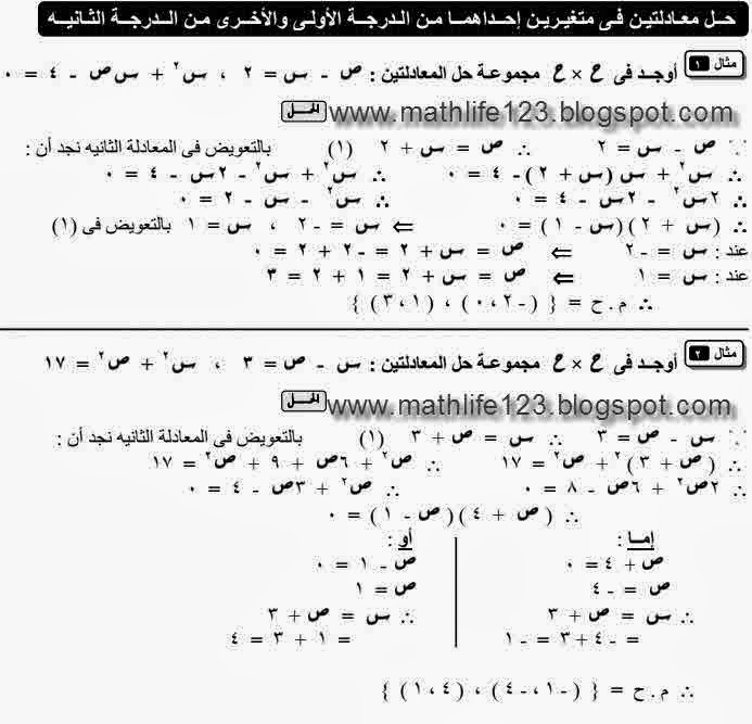 حل معادلتين فى متغيرين من الدرجه الاولى والاخرى من الدرجه الثانيه الرياضيات والحياة