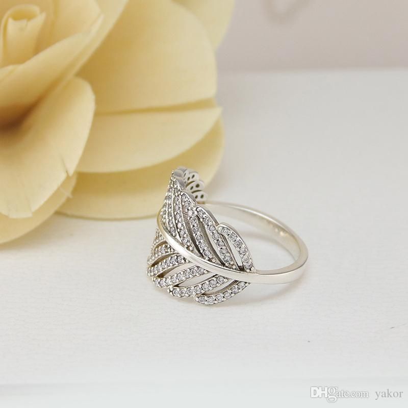 صندوق أصلي New 925 الفضة الريشة الزفاف Ring Logo لباندورا المشاركة مجوهرات خواتم الماس Cz كريستال للمرأة بنات 2020 من Superid 48 49ر س موبايل Dhgate